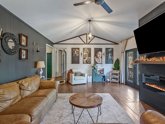 Finished basementElectric cozy fireplaceShiplap accentsOpen layoutAmple closet spaceHardwood and tile flooringSunken living space