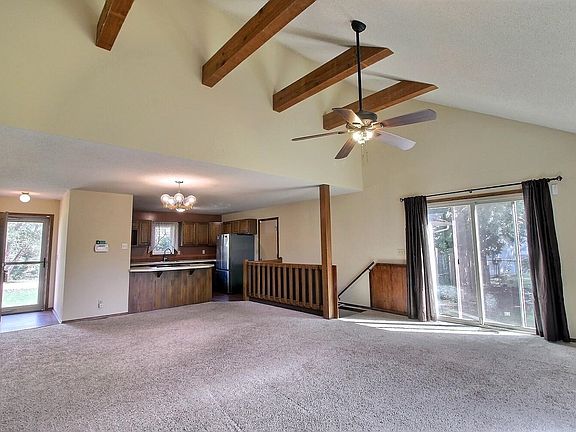 Tucked away at the end of a quiet dead-end street, yet just blocks from Rock Road and Kellogg, this spacious home offers over 2,400 sq ft on a quarter-acre lot. Step inside to soaring vaulted ceilings with rustic wood beams in the living room, open dining space, and a kitchen with eating bar, walk-in pantry, and all appliances included. The large primary suite features vaulted ceilings, a walk-in closet, and private backyard access. A second main-floor bedroom also offers a walk-in closet. Enjoy fresh interior paint through the main living areas, updated windows and sliding door, and newer siding and HVAC. The fully finished basement includes a huge family room, large bonus room with closet has potential for a 3rd bedroom by adding egress, 2nd full bath, a 2nd bonus rooms ideal for office or crafts, and a 3rd bonus area great for a game room or extra storage. Outside, relax in your private fenced yard with mature trees. Conveniently located near highways, shopping, and dining, this home is ready for your personal touches!