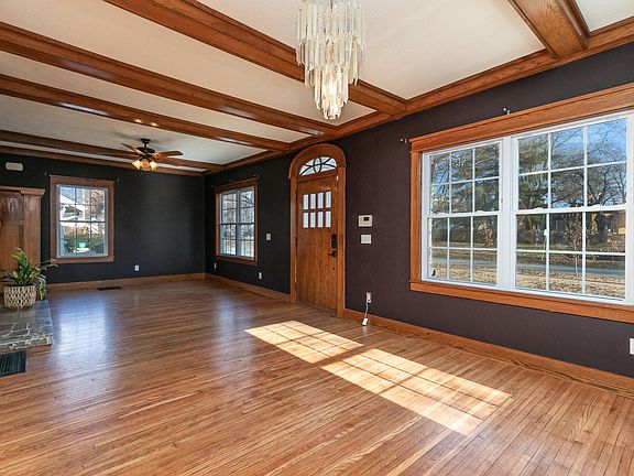 This charming 1927 home boasts four bedrooms and two and half baths on a tranquil dead-end street. An enticing residence featuring and large wood burning fireplace and coffered ceilings adorned with original, unpainted woodwork, what a find! The sunroom adds warmth and a cheery place to chill. The formal dining room is oversized and leads you to the modern kitchen with stainless appliances and granite counters. Double-pane windows enhance energy efficiency, making this a timeless haven. A stunning split staircase leads to the second floor. All bedrooms are upstairs and provide individual sanctuaries for each family member. Enjoy outdoor living on the large deck and relish proximity to Phelps Grove Park.