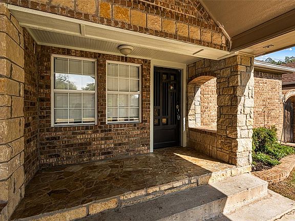 The kitchen showcases gorgeous brick accents, granite countertops, and custom cabinetry—a perfect blend of warmth and style. The home’s neutral color palette create a inviting atmosphere.