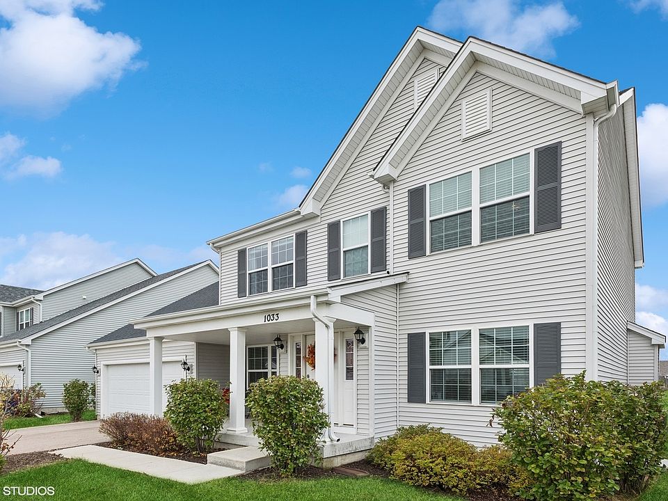Fantastic value compared to new construction! Have you been searching for the perfect home? THIS is it! Welcome to Elburn Station and discover the stunning Peach Tree Model, a fabulous home on a larger lot with exceptional curb appeal. Just under 4 years old and meticulously maintained, this home lets you skip the hassles and costs of new construction. Simply move right in and enjoy! This home, showcasing an impressive 2,595 square feet, features 4 spacious bedrooms, 2.1 baths, and an expansive yard. You'll appreciate the open floor plan, neutral color palette, 9-foot ceilings, and luxury wide plank laminate flooring on the main level. The kitchen boasts white cabinets, granite countertops, stainless steel appliances, recessed lighting, a spacious island, and a sizable pantry. It seamlessly connects to the family room with a cozy fireplace, ideal for entertaining. The kitchen includes an extra counter and cabinetry leading into the dining room for additional storage and convenience. The expansive master suite features a luxurious bathroom with dual vanities, a separate shower, and a spacious soaking tub. An enormous dual-sided walk-in closet provides ample storage. The second level includes generously sized bedrooms, each with a walk-in closet, and a full hall bath with a double vanity. The full basement, with tall ceilings and spanning 1,257 square feet, is plumbed for a bathroom, offering customization opportunities. Elburn Station is ideal for outdoor enthusiasts, offering biking and walking trails, basketball and tennis courts. The vibrant community includes numerous nature preserves, open spaces, and a charming downtown featuring local attractions like Ream's Meat Market, Alice's Ice Cream Shop, and the Corner Grind coffee shop. Commuters will appreciate the proximity to the Metra station and easy access to the interstate, providing quick connections to Chicago while enjoying the tranquility of small-town life. Don't miss this incredible opportunity in Elburn Station-schedule a visit today and see why this home is one of the best values on the market!
