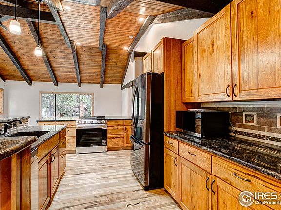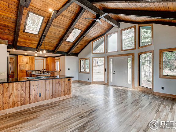 Bright, inviting, and beautifully reimagined, this 3 bedroom, 2 bathroom ranch home is tucked away on a quiet cul-de-sac, yet just minutes from downtown Estes Park, Lake Estes, 18 Hole Golf Course, Rocky Mountain National Park, and miles of trails. It's the perfect blend of convenience and mountain serenity. Step inside and you'll instantly feel the warmth with the vaulted ceilings, new white oak hardwood floors, and a great room drenched in natural light. The chef worthy kitchen pairs mountain charm with modern upgrades: granite countertops, custom cabinetry, a generous island, and stainless steel appliances (including a brand-new oven, range, microwave, and dishwasher). The private primary suite is a retreat of its own, complete with an oversized soaking tub. From the fresh interior paint and trim to the 5 new windows and striking entry door with sidelights, every detail was chosen with intention, marrying timeless comfort with a design-forward aesthetic. Step outside to enjoy Colorado living at its best. A wraparound deck and covered patio invite you to dine al fresco, watch elk graze through the pines, or stargaze under clear mountain skies. The .3-acre lot offers privacy, and all the beauty of mountain living, while being just minutes from your favorite watering hole, coffee shop, boutique and local restaurant. This beautifully updated home blends comfort, style, and tranquility, ready for everyday living or as your weekend retreat.