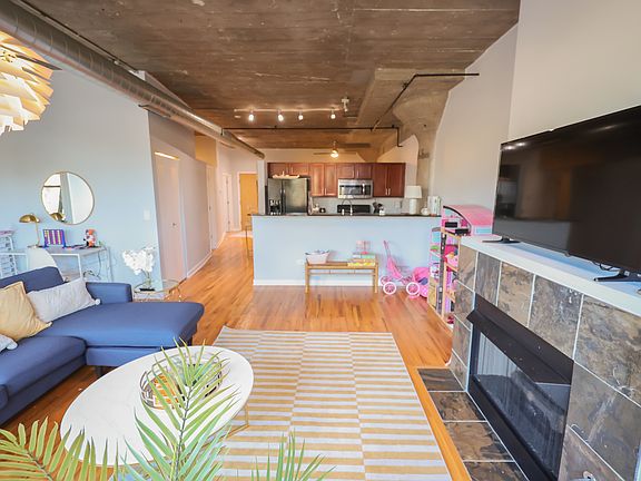 This stunning Landmark condo loft offers the perfect balance of modern style and functional comfort. Floor-to-ceiling expansive windows flood the space with natural light, highlighting the high ceilings and exposed concrete design that give the home its contemporary loft character. The spacious layout includes 2 bedrooms, featuring a primary suite with a serene master bathroom and walk-in closet. A versatile office area makes working from home easy and comfortable. The unit also comes with the convenience of an in-unit washer and dryer. Enjoy cozy evenings by the fireplace, or step out onto your private balcony with incredible views of the Willis Tower. The home also includes 1 indoor garage parking space for added convenience and security. On location gym, party room access, and roof top access, and access to outdoor pool. Perfect for city living, this loft combines industrial charm with everyday functionality in one of the most desirable locations.