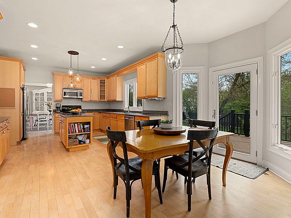 Constructed with only the highest-quality materials and upgrades, this gorgeous home is nestled in a desirable location and ready to welcome you! An impressive two-story foyer with new tile flooring sets the stage as you enter. The main level features an updated half bath, a formal living room highlighted by a beautiful bay window, and a formal dining room with a tray ceiling that overlooks the expansive backyard and flows seamlessly into the kitchen. The kitchen is equipped with stainless steel appliances, an abundance of cabinetry, and a center island-perfect for both everyday living and entertaining. The kitchen opens to an inviting eat-in area, which leads into the stunning two-story family room featuring a dramatic floor-to-ceiling stone fireplace. Upstairs, the spacious primary suite boasts walk-in closets and a new, luxurious en suite bath. Three additional generously sized bedrooms and two full baths complete the second level. You'll love the imported Canadian hardwood floors throughout both the first and second floors. This home also features a finished walk-out basement with 9-foot ceilings and an abundance of natural light. The versatile layout includes a fifth private room, full bathroom, recreation area, storage, and even enough room for a home office. Walk out to a generous deck and large yard, perfect for entertaining guests or unwinding in your own private outdoor oasis. U shaped drive leads to 3 car garage parking.
