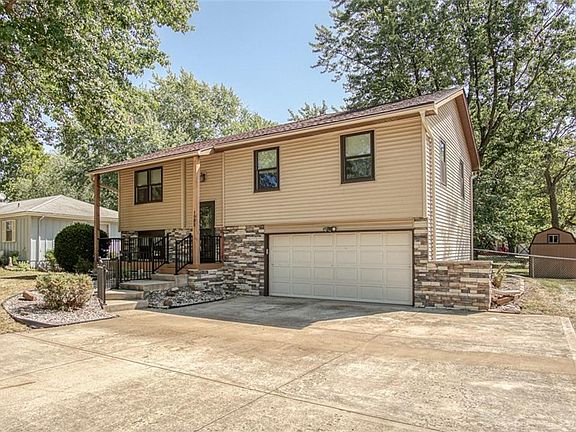 A delightful 3-bedroom home nestled in the Olathe. Lots of the big items have been replaced and ready for your finishing touches. This 3 bedroom home offers newer items like, maintenance free Vinyl Siding and stone trim. A new composite deck & banister, and long cozy front porch were built in 2020, with built in solar lights along the banister. The back yard is, large with some shade trees and fully fenced. There is a large Tuff shed in very good condition that is great for hobbies, storage or more. This property has had the roof and gutter guards replaced in 2014. HVAC and water heater are approx 7 yrs old. All new vinyl, thermal, double pane windows were installed in 2020 as well as a new front door and sliding door to the deck. All Windows have custom Levolor blinds installed. The master bath includes the half bath that also opens to the full hall bath. 2 sinks, 2 vanities.& 1 shower. The basement laundry area is stubbed for a bath. Renovated the kitchen and bath a few years back. SS fridge stays. Seller wishes to sell “as is’’. Buyer is welcome to do inspections. The fireplace looks fine but is no longer a useable fireplace as it is today. The chimney has insulation in it.