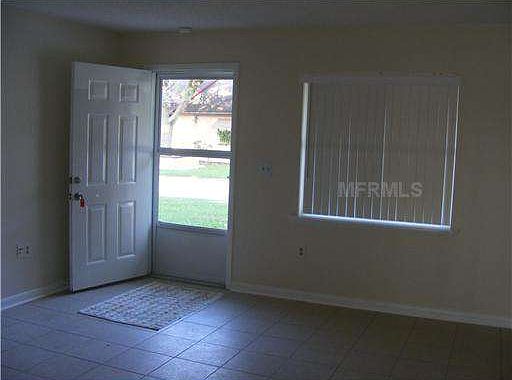 Lakefront two bedroom one bath single family home in Skyview Waters. New roof, new wooden back patio, new A/C unit, tile throughout. Includes kitchen appliances--Oven, microwave, refrigerator. One car garage with washer/dryer hook ups.