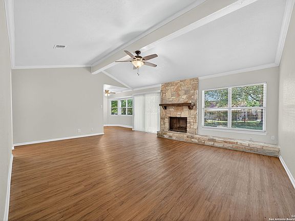 Move-In Ready 3BR/2BA Home in NEISD! Freshly painted and updated, this well-maintained home features laminate flooring throughout (no carpet), modern bathrooms, and major upgrades including a 40-year roof, gas water heater, garage door opener, and serviced HVAC (Aug. 2025). The open floor plan offers a functional layout with the primary suite tucked away for privacy and a spacious backyard. Perfect for anyone seeking an updated, low-maintenance living.