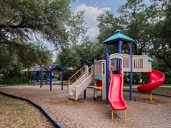 Impeccable! Beautifully maintained sprawling one-story in coveted Triana neighborhood is located on a premium lot that backs to a greenbelt providing excellent privacy. Featuring 4 bedrooms, 3 full baths, plus office, and a 3-car garage, this home provides space for all. The kitchen is light and bright, boasting gas cooking, center island, and opens to the living area with a gas fireplace. Modern elements and rich tones are found throughout, with wood floors, custom architectural details, and elegant ceiling treatments. Primary suite with vaulted ceilings and bay window is an ideal retreat. Primary bath boats oversized shower and a spacious closet. Generous secondary bedrooms, one with its own ensuite bath. Plentiful storage is found throughout! A large covered patio overlooks mature oak trees on a level lot. Three car oversized garage with built in storage racks. Residents of Triana enjoy outstanding neighborhood amenities including a gated entrance, pool, park, playground, pavilion, and elementary school right in the neighborhood.