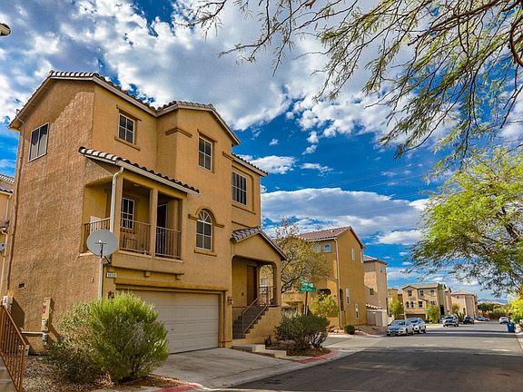 Beautiful, freshly painted home, with bed and full bath on 1st floor; Luxury Vinyl Plank flooring throughout the 1st and 2nd floor with soft, plush carpet on the 3rd; 1st floor bedroom with light, closet, cable outlet, Quartz vanity top, and sliding door to backyard; Storage area under stairs; 2nd floor features kitchen with solid surface counters, pantry, and stainless appliances including the refrigerator and microwave; Dining area with door to balcony; Living room with light; 3rd floor features primary suite with light, cable outlet, walk in closet, double sink and tub/shower combo; 3rd bedroom with light, cable outlet, closet and full bath; Laundry room features washer and dryer; 2 car garage with auto door, and entry to the house; Cozy yard great for BBQing; Community park and guest parking; Convenient to the 15, M Hotel and Casino, South Point Hotel and Casino and the famous Las Vegas Strip, shopping and dining!