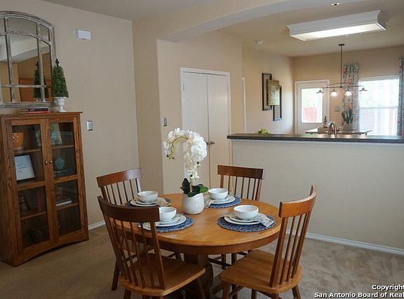 BEAUTIFULLY, WELL MAINTAINED 1 STORY NICELY LANDSCAPED ON A GREENBELT. THIS IS A PERFECT HOME FOR A SMALL FAMILY, STARTER, OR INVESTOR! NICE OPEN FLOOR PLAN WITH GOOD SIZE LIVING ROOM WITH COMBO DINING, GREAT FOR ENTERTAINING. EAT IN KITCHEN HAS UPDATED LIGHTING, STAINLESS STEEL APPLIANCES, AND LARGE PANTRY. NICE SIZE BEDROOMS. FRESHLY STAINED FENCE WITH COVERED PATIO AND NO BACK YARD NEIGHBORS! FRIDGE, WASHER, AND DRYER CONVEY FOR AN ADDED BONUS!!! NISD SCHOOL DISTRICT. CLOSE TO ALAMO RANCH AREA, UTSA, FIESTA TEXAS, LA CANTERA, AND THE RIM! DEFINITELY A MUST SEE!!!