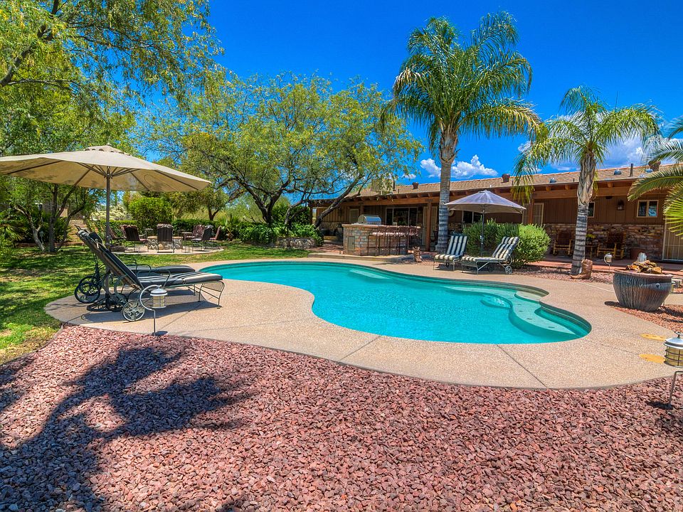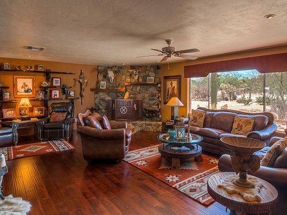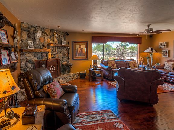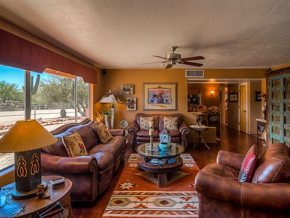 This beautifully remodeled horse property features a 4br/3ba adobe brick home with a separate 625 sq ft guest house, pool & spa. Horse facilities include 3 stall barn w/ large corrals, tack room, feed room & lighted arena. The main house features an open floor plan w/ alder doors & cabinets, wood & porcelain ceramic tile, ceiling fans throughout, solar lighting tubes & outdoor roll down shades. The home also includes a finished 695 sq ft garage & office not included in sq footage. The home contains a wood-burning fireplace in living area & electric fireplace in office. Back yard oasis includes an island barbecue w/ refrigerator & wood-burning fire pit.