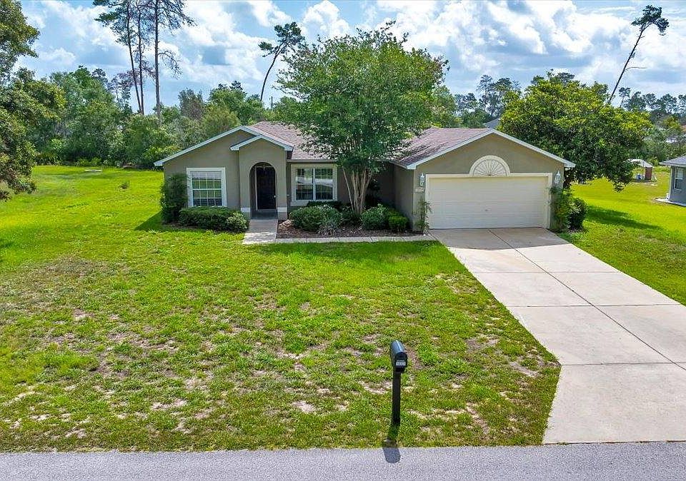 Welcome to your next home. This charming 3-bedroom, 2-bathroom, 1,454 sq ft residence offers comfort, style and convenience in the heart of SW Ocala. Featuring vaulted ceilings, laminate and tile flooring and crown molding, this home exudes warmth and elegance. The modern kitchen boasts granite countertops, stainless steel appliances and plenty of storage space-perfect for cooking and entertaining. The master suite offers a walk-in closet with built-in organizers and a private bath, while the enclosed A/C lanai provides a relaxing retreat year-round. Recent upgrades include a new roof (2023) and brand-new well, ensuring peace of mind and reliable living. Nestled on a 0.46-acre lot, there's room for outdoor activities and privacy, while local amenities, schools and shopping are just minutes away. Dishwasher, Electric Stove, Microwave, Refrigerator, Ceramic Tile, Laminate, Laundry Room, Living Room, Sun Room & Pet Friendly.