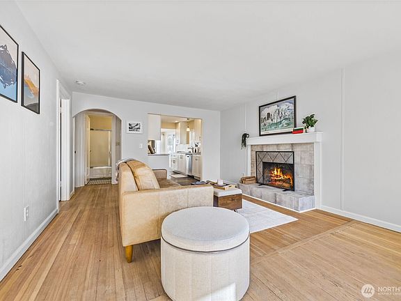 Charming 3 bedroom, 2 bathroom home awaits you on a sunny lot! The home welcomes you with a cozy wood burning fireplace and hardwood floors that lead into the updated kitchen and sun-filled dining room. The adjoining MIL/ADU offers the perfect multigenerational living setup or rental income potential, or use it as one seamless flowing home with room for everyone. Outside, enjoy versatile deck and patio spaces for al fresco dining, BBQ, fire pit and gardening, complete with apple, cherry, and fig trees in the fully fenced yard. Alley access offers an easy future off-street parking option. Minutes to the Light Rail, Green Lake, and so much more. LR2 zoning offers excellent investor options.
