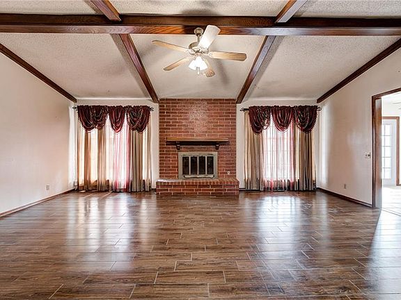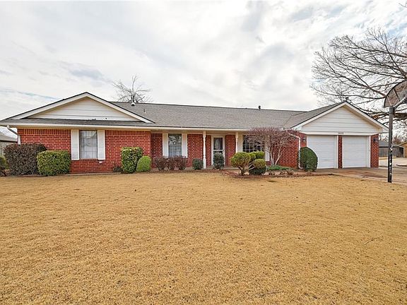 Come see this super clean 4 bedroom, 2 bath home. ALL bedrooms are spacious. When you walk in there is a large "formal" dining can also be a living space, or office. Main living features wood tile floors. The kitchen has PLENTY of cabinet space. The eat-in dining has ample space. Formal dining also features a pantry! Mature beautiful landscaping with sprinkler system. The grass is so GREEN and LUSH in the summer. Additional concrete parking on the side of the house. Double gates with a concrete pad to park (a boat or trailer)in the backyard. Shed in the backyard. Easy access to I-40 & Turnpike & shopping. Mustang Schools
