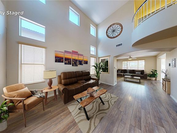 Amazing open layout in the Lone Moutain gated community of Shadow Hills with resort style living features including: Pools/Jacuzzi/Lap Pool, Fitness Center, Sauna, Putting Green, Club House, BBQ/Relaxing Patios, all meticulously maintained and low HOA! Close to Majestic Park, Lone Mountain Regional Park, Cliff Shadows Open Desert Park, and hiking trails. The home has a spacious open layout with family room to the kitchen and nook whith upgraded KitchenAid appliances, quartz countertops, large island with breakfast bar, walk-in pantry, amazing tile and wood floors throughout the downstairs and baths, plus a true laundry room with included appliances. All 4 bedrooms are upstairs and a possibility of being converted to a 5th bedroom/office in lieu of 3rd car tandem garage space. On a large cul-de-sac lot with Mtn & City/Strip Views, Alumawood patio, Astroturf and more. Close to shopping, dining, and I215 Hwy. Check out the Matterport walking tour to see everything about this great home.