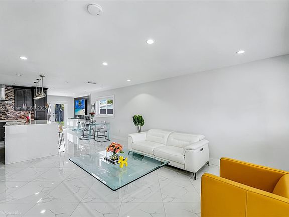 Sophisticated 4-bed, 2 bath home with sleek modern finishes, advanced automation, and resort-style outdoor living. Open-concept layout features polished porcelain tile floors and abundant natural light. Gourmet kitchen includes quartz counters, stainless steel appliances, and custom cabinetry. Private primary suite offers walk-in closet and spa-style bath. Smart home controls lighting, temperature, security, and audio. Hurricane-proof windows with automated blackout and sheer shades. Backyard oasis boasts pool, waterslide, lounge deck, covered patio, summer kitchen, and tropical landscaping. Prime location near top schools, shopping, dining, and major expressways.