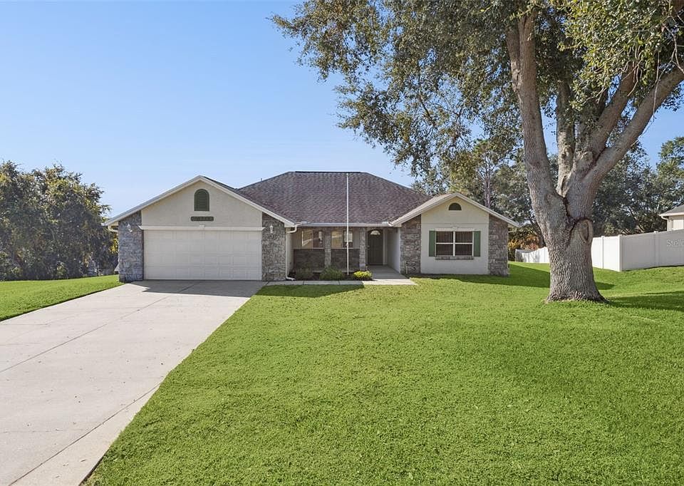 Welcome to your new dream home! This beautifully kept 4-bed, 2-bath Clermont home welcomes you the moment you arrive with a beautifully manicured front lawn, extended driveway, and charming covered front porch set the tone before you even step inside. Just off the entry, a formal dining room provides a lovely space for gatherings and conveniently connects directly to the kitchen for effortless hosting. The home then opens into a bright and spacious living area, where high ceilings and abundant natural light create an airy, comfortable atmosphere. The kitchen features a full suite of appliances, a breakfast bar, and a cozy dinette perfect for casual meals or busy mornings. Preparing meals of any size in this kitchen is sure to feel like a breeze, and it provides the perfect canvas for truly making this space your own. The split-bedroom floor plan places the expansive primary suite on its own side of the home, offering a peaceful retreat. It includes a generous walk-in closet and an en suite bathroom with a large soaking tub, separate shower, and dual vanities. The additional bedrooms are well-sized with ample storage and natural light, and the second bathroom also includes a convenient dual vanity so morning with your loved ones are stress free. Step outside to an elevated patio, ideal for enjoying your morning coffee while taking in the quiet nature views. The spacious backyard is perfect for little ones, four legged friend, gardening, or simply relaxing in the Florida sunshine. The community includes private dock access to Lake Louisa, so you can enjoy Florida’s natural beauty while staying close to home. Located just off Hwy 27, you’ll love the convenient access to great schools, excellent dining and shopping, and everyday essentials. And for even more fun, Disney World is only 20 minutes away! Don't miss out on the opportunity to make this amazing home yours, schedule your private showing TODAY!!!