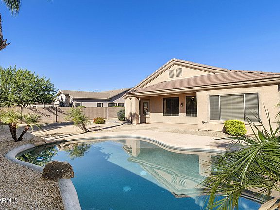 Lovely single story gem designed with 3 bedrooms plus office and a 3 car garage in Santa Rita Ranch. Fabulous curb appeal you don't want to miss! Spacious kitchen with ample cabinetry, crown molding and stainless appliances, granite counters and travertine backsplash. Open concept floor plan for easy entertaining. Unwind by the heated pool in your private backyard retreat. Very generous lot - large enough to add a putt-putt! Just minutes from US 60 and Loop 202, fantastic restaurants, close to medical care and entertainment. Don't miss this opportunity to make it your own! IT WON'T LAST LONG!