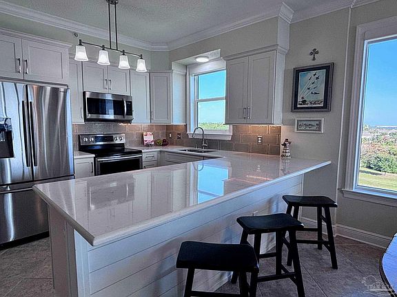 Imagine waking to see a magnificent sunrise on the water, and later, witness a gorgeous sunset. That's what it's like living in Snug Harbour 501. Located on Big Lagoon, with the Gulf of America in sight, you will see osprey, pelicans, sea gulls and dolphins from your end unit windows and balcony. Within 15 minutes, you can drive to spend the day at Johnson's Beach National Park or Big Lagoon State Park. Restaurants, shopping centers, and a library are nearby. And since NAS Pensacola is nearby too, you will never get tired watching the weekly practice of the famous Blue Angels. This 3BR/3BA has updates including kitchen cabinetry and backsplash, quartz countertops throughout, motorized blinds in the main living area, laminate flooring in the guest rooms, and a 66 gallon hot water heater. In the last few years, additions have included a Samsung dual oven, dishwasher, and microwave and a 3.5 ton variable speed HVAC system. There is a Community Room for parties with stairs leading to the outdoor pool. Storage units, kayak racks, barbecue in front of grill and picnic tables are available. Fishing and crabbing is fun on the marina pier. Have a good workout in the gym, then relax in the sauna and spa, and take a swim in the heated indoor pool or outdoor pool. Going for a walk or bike ride is a pleasure because there is always a cool breeze. These are just a few reasons why you may want to purchase Snug Harbour 501. Call today!