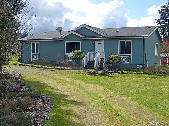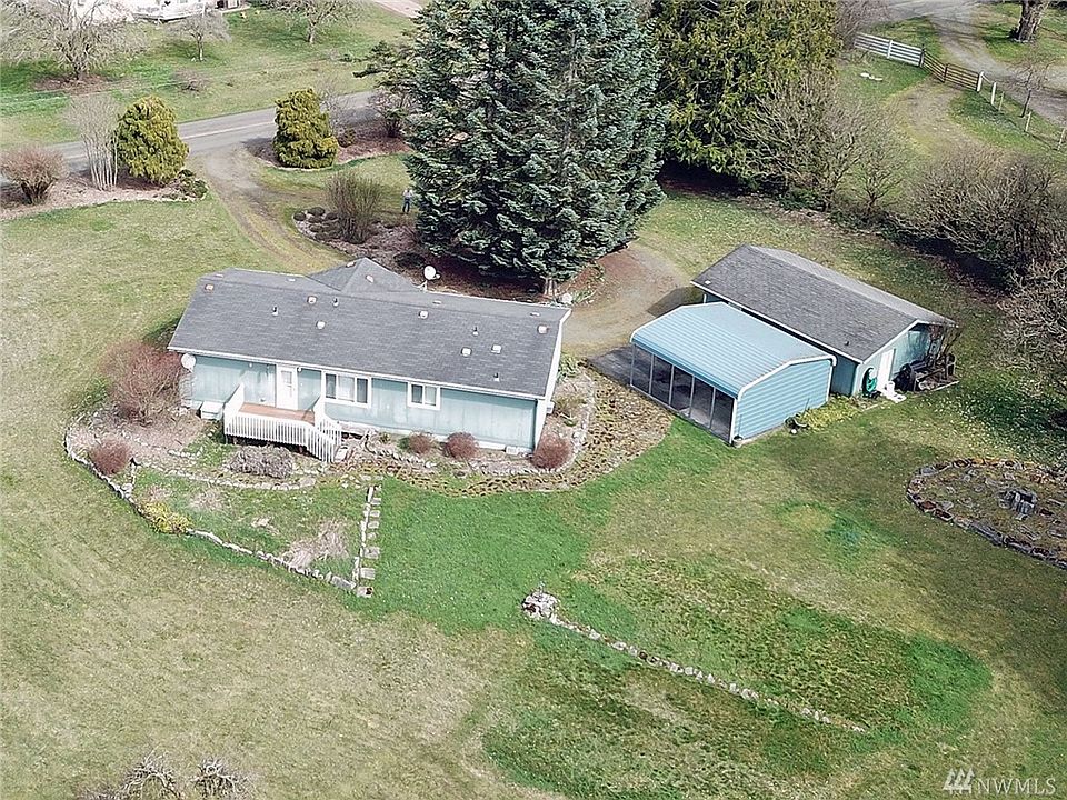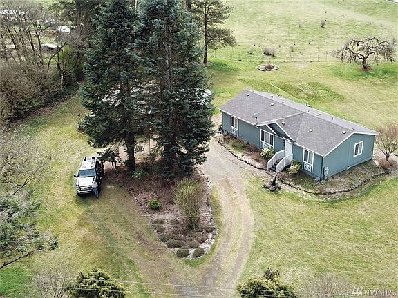 Rare find near Independence Valley. 2006 Dblwide on easy care shy-acre bordering open expanse of farmland. Hickory cabinets & brushed nickel fixtures in split bdrm floor plan with den/office/3rd bdrm. Multi windowed 24x36 SHOP + Prefab Metal CARPORT. Wooded privacy hedge to North. All bldgs on upper portion of property. Enjoy evenings in park-like lower area with firepit & view of foothills. Centrally located w/ schools, services & Casino just 3 miles & 6 miles to I-5 between Seattle & Portland.