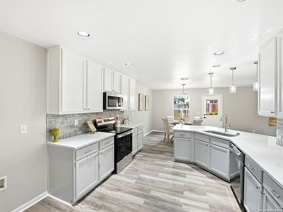 This beautifully updated home offers the perfect blend of modern upgrades and comfortable living. Step inside and you'll find fresh paint, new flooring, and stylish finishes throughout. The spacious living area flows seamlessly into a bright kitchen featuring updated countertops, refinished cabinets, and stainless-steel appliances, perfect for everyday living and entertaining. The primary suite offers plenty of space and a private bath with updated fixtures. Secondary bedrooms are roomy and versatile for guests, work, or play. Outside, enjoy a private backyard with a covered patio, ideal for relaxing or hosting weekend barbecues. Located in a quiet neighborhood just minutes from shopping, dining, Lackland AFB, and easy highway access, this home is move-in ready and waiting for its next owner.