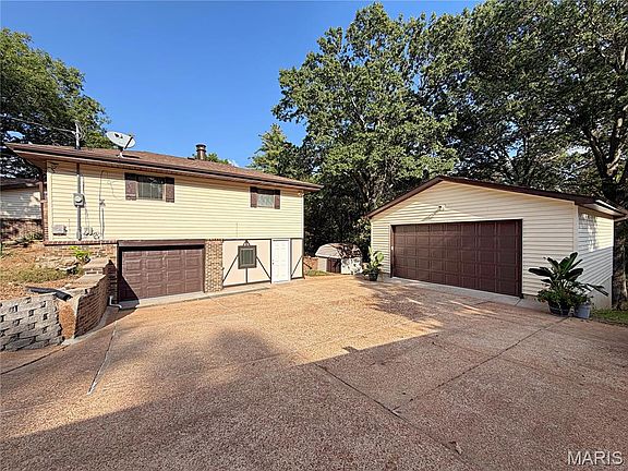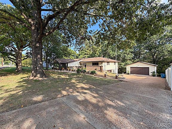 Don't miss this hidden gem in South County!! A sprawling ranch home situated on almost an acre of land, with an in-ground pool and park-like lot! Oversized and heated garages, a pool party room off the patio and lots of outdoor space for entertaining. 4 bedrooms on the main level, one with a fireplace, finished walk-out basement, a deck and large patio! Lovely covered front porch with a cathedral style roof, ceiling fans and lighting. ALL brand new kitchen!! Soft-close white shaker cabinets with gold handle pulls, granite countertops and matching granite backsplash all the way up to the cabinets, stainless steel appliances with a fancy gas stovetop, single-bowl stainless steel sink with matching gold faucet! And the kitchen walks out to the private deck that leads down to the pool! Brand new pool pump, completely fenced in pool area, private yard that backs to trees, what more could you want?! Come see what this unique property has to offer!