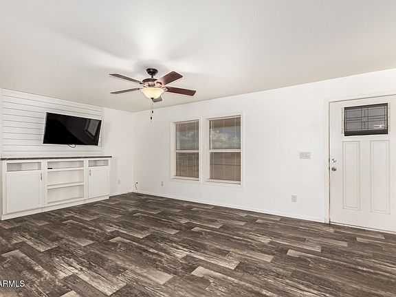 Delightful 3BR manufactured home on over 1.6 acres of land! This property offers abundant parking and lots of landscaping potential. Inside, discover a large & bright open floor plan complemented by soft neutral paint and popular wood-look vinyl floors. The kitchen showcases recessed lighting, staggered white cabinets with crown moulding, contrasting dark counters, stainless steel appliances, a SS single-bowl sink, and an island. All bedrooms have carpet, ceiling fans, and closets. The primary suite hosts a bathroom with a dual sink vanity. Out the back, you'll find a thoughtfully divided fenced backyard; furthermore, the exterior offers a paddock shelter for horses and tons of space to roam. All this is located in a quiet & secluded area with mountain views! What's not to like? Act now!