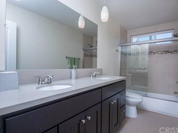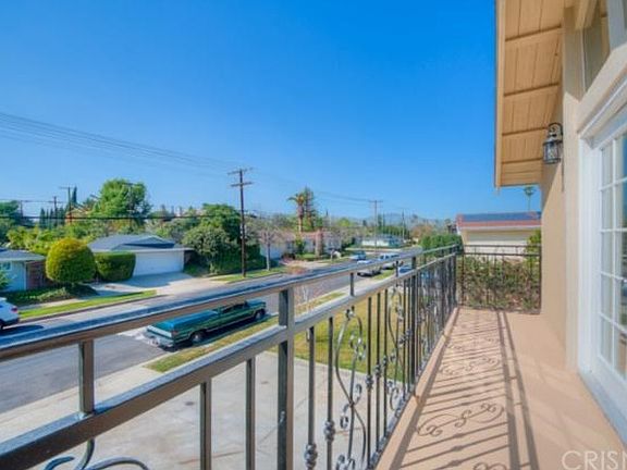 Beautifully remodeled tri-level home in prime Granada Hills neighborhood with quality upgrades throughout! Custom double door entry with dramatic wood staircase, leads to open living room, cathedral ceilings, bay windows, newly refinished wood floors & staircase. Step down into the spacious dining room w/ French doors, guest bath, large family room with limestone fireplace, and French doors leading to patio enclosure w/ additional 550 sq ft. Chef's kitchen with custom cabinetry, Quartz counter tops, farm sink, glass tile backsplash, double pantry, Samsung stainless stove, microwave, dishwasher, refrigerator, and huge Quartz center island w/ breakfast counter. Upstairs wood floor hallway leads to enormous master suite with separate sitting area, new Berber carpet, walk-in closet and French doors leading to new iron balcony. Master bath and hallway bath both with double sinks, Quartz counters, tiled shower with mosaic accents & linen tile flooring. Additional 3 spacious bedrooms have mirrored closets and Berber carpet. Double paned windows throughout, copper plumbing, dual A/C zones, separate laundry room. Finished 2 car-garage with new automatic door, new landscaping in front and back with pool sized yard. Paid off SOLAR system 12K. Top of the line artifi