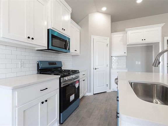 This Bogan Floor Plan includes 1,510 Sqft of total living space, which includes 1,400 Sqft of indoor living space and 110 Sqft of outdoor living space. There is also a 395 Sqft, two car garage with a storm shelter installed. This home offers 3 bedrooms, 2 bathrooms, 2 covered patios, an office, and a utility room. The living room welcomes wood-look tile, large windows, a ceiling fan, and Cat6 wiring. The kitchen has 3 CM quartz countertops, stainless-steel appliances, wood-look tile, custom-built cabinets with decorative hardware, and stylish tile backsplash. The primary suite is straight ahead & features noteworthy carpet flooring, a ceiling fan, Cat6 wiring, and perfect-sized windows. The spacious primary bath offers a dual sink vanity with an elegant countertop selection, a walk-in shower, an elongated water saving toilet, and a HUGE walk-in closet! The outdoor living area is covered and has fully sodded yards with a water saving sprinkler system. Other amenities include a tankless water heater, a fresh air intake ventilation system, R-15 and R-38 insulation, an air filtration system, and so much more!