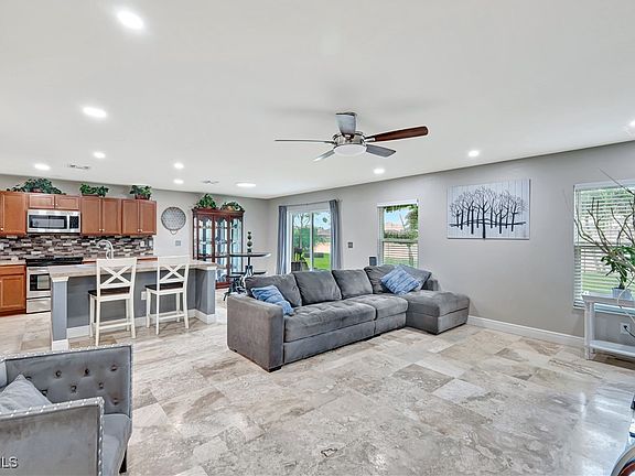 Home officeGuest bedroomFlex roomCozy front denFilled with natural lightStunning stone travertine tileSeparate dining room
