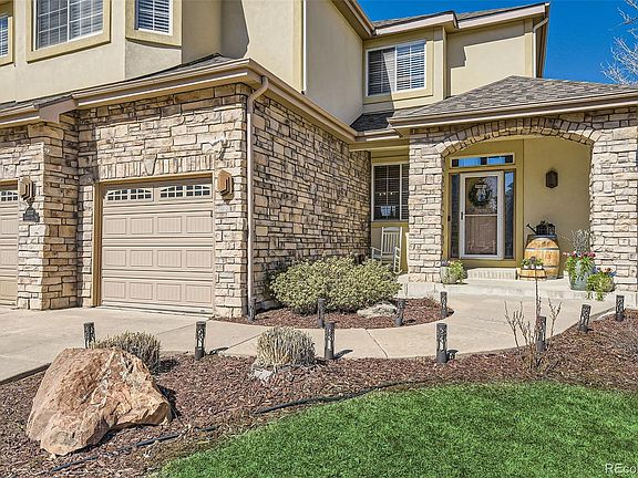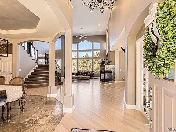 JUST LISTED in Lone Tree’s beautiful Carriage Club neighborhood! OPEN HOUSE this Saturday, March 29, from 12–3 p.m. This stunning home offers over 5,400 finished square feet, backing and siding to open space with no neighbors behind—providing incredible mountain views. Featuring 4 bedrooms and 5 baths, the main floor showcases hardwood floors throughout, a family room with soaring 20' ceilings, a wall of windows, and a three-sided fireplace. The main level also includes a living room, office, formal dining room, a kitchen with granite countertops and stainless steel appliances, and a large laundry room with a utility sink. Elegant decorative light fixtures and a dual staircase with wrought iron railings add to the home's upscale feel. Step onto the expansive composite deck with stone columns and decorative railings, and soak in Colorado’s beautiful weather. The fully finished garden-level basement features a large bedroom, a spacious rec room with an electric fireplace, TV area, game zone, and wet bar. Upstairs, the primary suite boasts vaulted ceilings, mountain views, a designer barnwood accent wall, and a luxurious bathroom with a jacuzzi tub, a custom shower with dual heads, a hand shower, body sprays, and a walk-in closet system. Two additional bedrooms with walk-in closets (one ensuite), plus a loft overlooking the family room, complete the upper level. The huge 11,700 sq. ft. flat yard is perfect for outdoor activities. Additional highlights include a stucco exterior, newer dual-zone furnace and A/C (2013), two brand new water heaters, and a 3-car garage with epoxy floors. Trails are just steps away, offering easy access to Bluffs Regional Park and miles of scenic hiking and biking. Conveniently located near Charles Schwab, SkyRidge Hospital, light rail, I-25, C-470, and Park Meadows Mall. Visit our 3D Virtual Tour at www.10337CarriageClub.com!