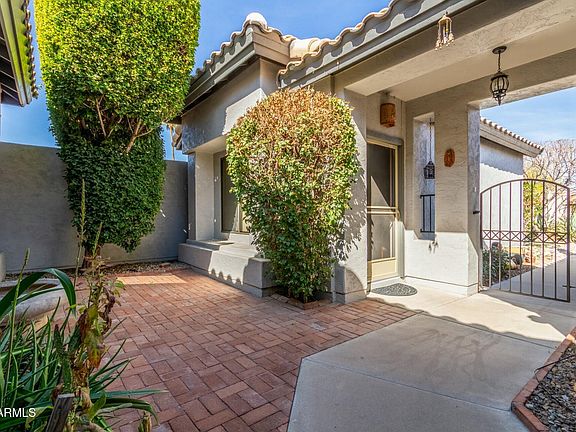 Amazing residence in Cottonwood at Sun Lakes on the GOLF Course. Exquisite curb appeal with mature landscaping. As you enter thru the Private Courtyard to this BEAUTIFUL Barcelona - 2 bedroom 2 bath PIUS a charming large CASITA. Entering the home onto BEAUTIFIL marble flooring thru-out the entry hall & Kitchen complimenting the STUNNING wood like flooring in Living room, Dining room, & bedrooms. - KITCHEN with BEAUTIFUL CABINETRY, GRANITE COUNTERTOPS & ISLAND. Kitchen, Family , & Primary bedroom all have patio doors opening to the beautiful Patio areas,, Pool and Golf course. The Owners suite has a lovely Sitting Area - Luxurious Bath with large walk-in closet. The Large Laundry Rm. of the kitchen going out to a large 2.5 Garage. The detached casita boasts a spacious living/sleeping area & a private bathroom, walk-in closet making it perfect for in-laws or overnight guests. The backyard is a desert Oasis full of vegetation with a sparkling blue pool & view of the Cottonwood Country Club golf course. THIS HOME EXCUDES WARMTH, STYLE, and JUST PURE COMFORT!