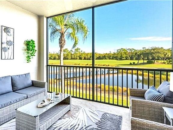 Available for short- or long-term lease! This beautifully furnished and tastefully decorated turnkey condo in Heritage Bay offers 2 bedrooms and 2 baths in a highly desirable North Naples location just minutes from shopping, beaches, and top dining and entertainment. Located on the second floor with elevator access, the residence features stunning golf course and lake views from the screened lanai. Washer & dryer, cable, high-speed internet, water, and trash removal are included. Access to five community pools is provided. Golf membership NOT included. No smoking. No pets. Short-term rate: $4,000 per month, 11% tourist tax applies to short-term rentals. Heritage Bay is one of North Naples' most beautiful and sought-after gated communities!