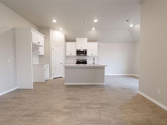 This Tero floor plan includes 1,680 Sq Ft of total living space, which includes 1,565 Sq Ft of indoor living space and 115 Sq Ft of outdoor living space. There's also a 385 Sq Ft, 2-car garage with a storm shelter installed. This affordable home offers 4 bedrooms, 2 full baths, covered patios, and a utility room. The great room welcomes large windows, wood-look tile, a ceiling fan, and Cat6 wiring. The charming kitchen has 3 CM countertops, stainless-steel appliances, wood-look tile, well-crafted cabinets with decorative hardware, a center island, and stylish tile backsplash. The primary suite is straight ahead and supports carpet flooring, a ceiling fan, and the perfect sized windows. The attached primary bath suits a dual sink vanity with an elegant countertop selection, a walk-in shower, an elongated water saving toilet, and a HUGE walk-in closet! The outdoor living section is covered and has fully sodded yards with smart home irrigation control. Other amenities include a tankless water heater, a fresh air intake system, and MORE!