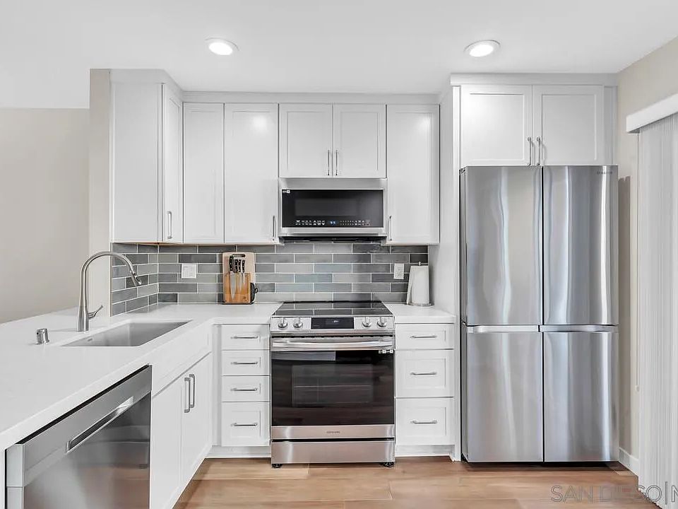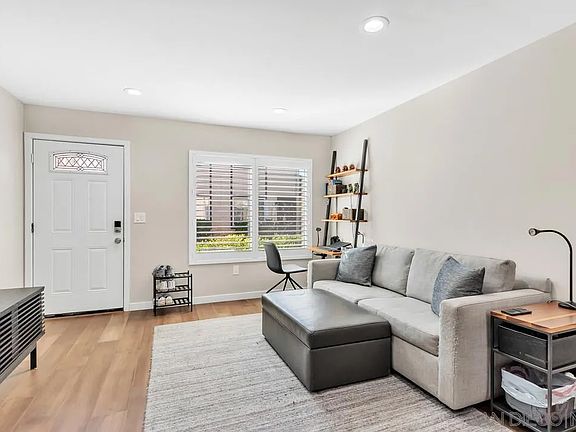 Fully rebuilt in 2022, this stunning 2-bedroom, 1-bathroom home offers modern finishes and thoughtful upgrades throughout. Enjoy new plumbing, wiring, HVAC, drywall, and dual-pane windows for efficiency and comfort. Engineered wood flooring enhances the main level, with carpet upstairs for a cozy touch. The upgraded kitchen and bathroom feature modern cabinetry and countertops, and the primary bedroom includes a walk-in closet. Convenient built-in USB chargers in electrical. Outdoor living shines with a spacious covered patio featuring concrete, turf, and extra storage space. The property also offers a 2-car tandem carport with additional storage. The Carefree community boasts lush landscaping, a sparkling pool and spa, and a great location close to schools, shopping, dining, and Mission Trails Regional Park. Move-in ready and rebuilt with quality craftsmanship—don’t miss this exceptional opportunity!