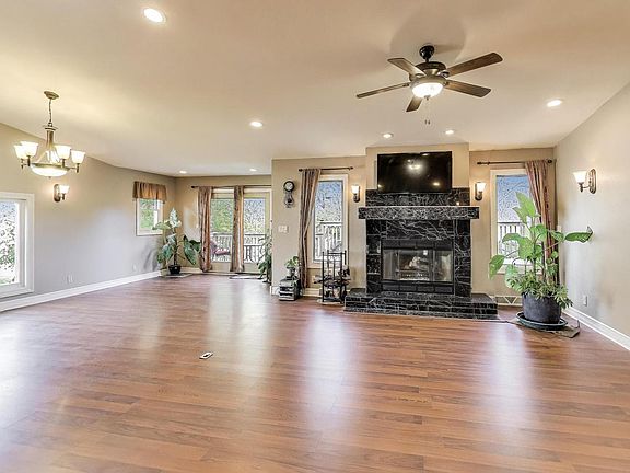 Hot tubWalkout basement rec roomBuilt-in speakersGas range topFenced yardNatural wood-burning fireplaceGorgeous deck