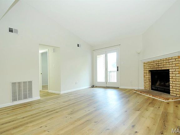 Nice 2nd floor 2 bedroom 2 bathroom condo conveniently located in St Louis West County. As you enter you are greeted by large living room with vaulted ceiling, fire place and access to balcony overlooking neighborhood pond. To the left is breakfast room area and updated kitchen with white kitchen cabinets, quartz counter top and white appliances. Hallway with laundry/utility closet, guest bathroom and one bedroom on the right side. Down the hallway is nice size master bedroom with full bathroom and walk in closet. New luxury plank vinyl flooring in kitchen, breakfast and living room, freshly painted. Interior access corridor, book close to close to complex pool tennis courts, club house available for private parties.
