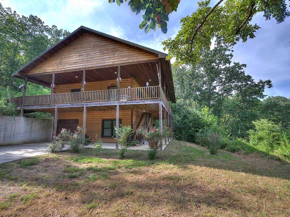 Discover serenity in this beautifully crafted log home nestled in North Georgia's mountains. Enjoy long-range year-round mountain views from the upper and lower oversized covered decks. Marvel at year-round panoramic views from expansive upper and lower decks. This home is 6 years new and features 3 large bedrooms, each with their own private bathroom and a half bathroom on the main level. The home features a master bedroom on the main floor with an additional 2nd bedroom ensuite. Beautiful large family room with vaulted ceilings, gas log fireplace and large dining area. Stainless steel appliances, granite counters tops in kitchen and bathrooms. Downstairs you will enjoy a tiled shower and bath in the large second master bedroom and a large recreation room and a second gas log fireplace. One car garage. Amenities galore in gated Talking Rock Creek Resort. This community is gated with 3 entrances and offers many amenities including 2 swimming pools and 2 tennis courts, several covered pavilions and a lake, a workout facility in the community center, a Trout Lodge where you can host your family get together and enjoy views of a cliff and a rolling creek to fish and wade your feet. The community is close to Carters Lake. There is boat and RV Storage available in the community. This home would be great as a vacation rental or used as a permanent resident. Furnishings shown are included in the sale on a separate bill of sale (with the exception of some items in the garage).