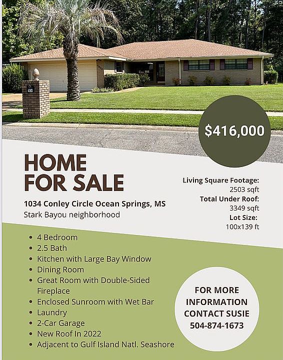 Well kept single story home in Stark Bayou Neighborhood. 4 Bedrooms and 2.5 bathrooms. Lot backs up to the Gulf Islands National Seashore. Dining Room, Vaulted Great room with double sided fireplace. Enclosed Sunroom has a wet bar as well as lots of windows looking over the beautiful backyard. Large Galley style kitchen with bay window overlooking the back patio. Attached 2 car Garage, laundry room. Master Bathroom updated in 2020 with large shower and double sinks. RV parking in side yard with Electrical hook-up.