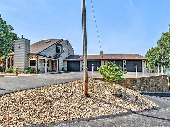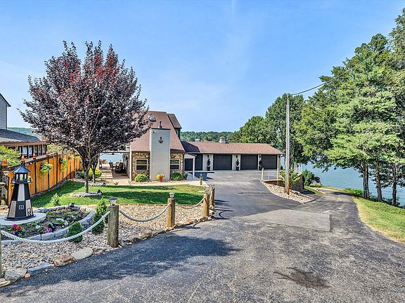 Sunrise-Sunset with incredible MILLION DOLLAR VIEWS from our pristine lake frontage property. You can see the breathtaking mountains behind the bridge at "Bridgewater Plaza" on the wide open main channel which surrounds this home! THIS PROPERTY HAS ALL YOUR LAKE LIFE NEEDS!!!! Picture yourself sitting, relaxing, overlooking the lake, entertainment everyday with boats, jet-ski's, houseboats, paddle boards, kayaks and the seaplane aircraft but yet a quiet area! Circular private road to home, maintenance free pavers wraps around walk ways from front of home thru covered side porch (2 ceiling fans) to the back patio deck with fire-pit. Full sprinkler system from the front to the back of home. Professional landscaping & lighting with rock and flagstone. On second plateau, there is a wood burning fire-pit with benches and continuing walkway down to the boathouse. The newly built boathouse is approximately 30' x 32', floating dock approximately 7'x 25', large boat slip, 2 jet ski's lifts, installed vacuum system with 30' hose, multiple tie-ups for boats and jet ski's. It has maintenance free composite decking, walk in bar with cabinets, full size refrigerator, roll up open bar window with granite bar countertop. 4 ceiling fans. This property requires minimal maintenance! Create dreams that will delight and entertain for years to come! Imagine hosting gatherings with family and friends, looking out over the stunning picturesque Lake! Turn Key....furniture and furnishings included. Make this impeccable lake home your very own dream haven!!!