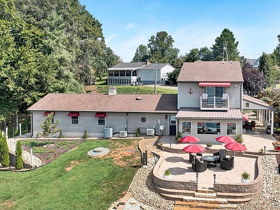 LAKE LIFE-ONE OF A KIND, LOCATION, LOCATION, LOCATION!!! Beautiful custom waterfront home on Smith Mountain Lake! This amazing home is totally remodeled featuring 3 bedrooms and 2 full bathrooms. Primary bedroom with balcony overlooking SML's Main Channel. Bathrooms have modern style ceramic title from floor to ceiling. Large 4 bay garage, heated and ceiling fans in each bay with abundant storage areas with large pantry in first bay! Custom kitchen with quartz, durable counter tops, custom made appliance cabinet which stores coffee pot with running faucet water ,microwave and storage drawers. Cathedral ceiling in great room with full multi-color slate faux stone on wall surrounding gas operated fireplace. Custom mantle and 2 custom storage benches Click on ''More'' Public Remarks.. on both sides of fireplace. Built-in bar with cabinets and bar refrigerator. Custom professional blinds on all windows and sliding glass doors. Sunroom with large picturesque windows overlooking SML's masterpiece! Ceramic tile on 1st floor, new carpeting on 2nd floor and ceiling fans throughout the house. New HVAC System with 2 additional mini-split units in primary bedroom and sunroom. Underground 325 gallon propane tank supplies gas to stove, hot water tank, fireplace, burn pit and grill. New double pane windows and sliding glass doors throughout home and so much more.....