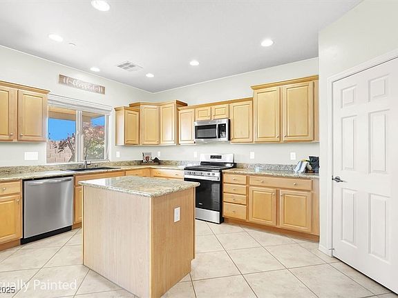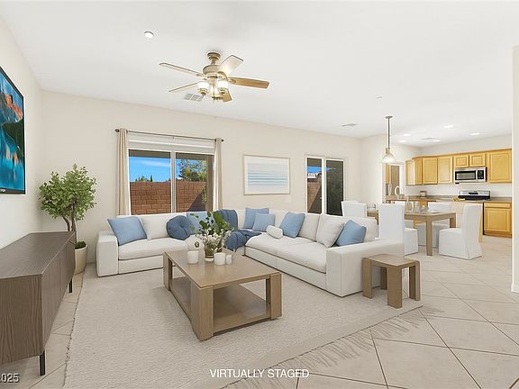 Immaculate 4-bedroom, 3-bath Pulte home is filled with thoughtful upgrades, modern touches & nestled below the breathtaking Black Mountain. Open-concept floor plan offers a spacious great room & formal living area/flex space, while the chef’s kitchen boasts granite countertops, island, rich wood cabinetry, newer stainless steel appliances & pantry. Each bedroom has mountain views, ceiling fans, generous closet space & plush newer carpeting. Primary suite features luxurious bathroom w/Roman tub, separate shower, dual sinks & raised dual vanity. Additional highlights: Smart home technology, H2O filtration system, Newer A/C’s (2022), large laundry room, finished garage & tons of storage. Exterior: custom landscaping in the front & back yards, welcoming front porch, large covered patio & an extended driveway for extra parking. Located near top rated schools, shopping, dining & freeway access. Mountain biking & hiking trails blocks away w/ Lake Mead & Boulder City within a short drive.
