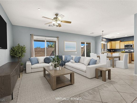 Nestled below the breathtaking Black Mountain, this beautifully maintained 4-bedroom, 3-bath Pulte home is filled with thoughtful upgrades & modern touches. Open-concept floor plan offers a spacious great room & formal living area/flex space, while the chef’s kitchen boasts granite countertops, island, rich wood cabinetry, newer stainless steel appliances & pantry. Each bedroom has mountain views, ceiling fans, generous closet space & plush newer carpeting. Primary suite features luxurious bathroom with Roman tub, separate shower, dual sinks & raised vanity. Additional highlights: Smart home technology, H2O filtration system, Newer A/C’s (2022), large laundry room, finished garage & tons of storage. Exterior: custom landscaping in the front & back yards, welcoming front porch, large covered patio & an extended driveway with extra parking. Located near shopping, dining & freeway access. Mountain biking & hiking trails blocks away with Lake Mead & Boulder City within a 20 minute drive.