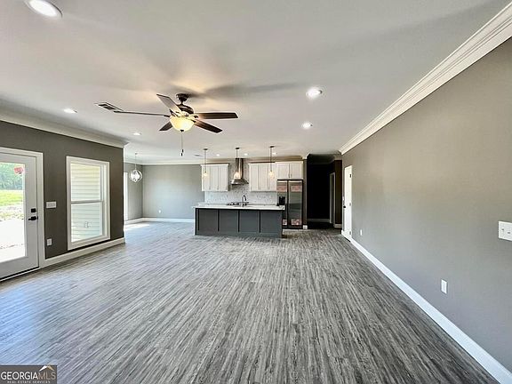 Immaculate four bedroom, two bath home. LVP flooring throughout home. Kitchen with granite countertops, large center island, and stainless-steel appliances. Granite countertops in the bathrooms. Spacious Master Bedroom. Master Bathroom with double sinks, walk in shower, tub, and stunning walk-in closet. Concrete patio at back of house. Great location within the County in the Laurens Northwest District. Walk across the street to Northwest Laurens Elementary School. 10-minute drive to Dublin. Home is currently tenant occupied and can be show by appointment. Home will be ready for a new tenant around September 1, 2025. Home is also available for purchase for $245,000. Copyright Georgia MLS. All rights reserved. Information is deemed reliable but not guaranteed.