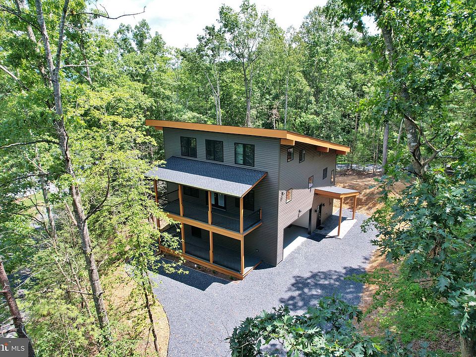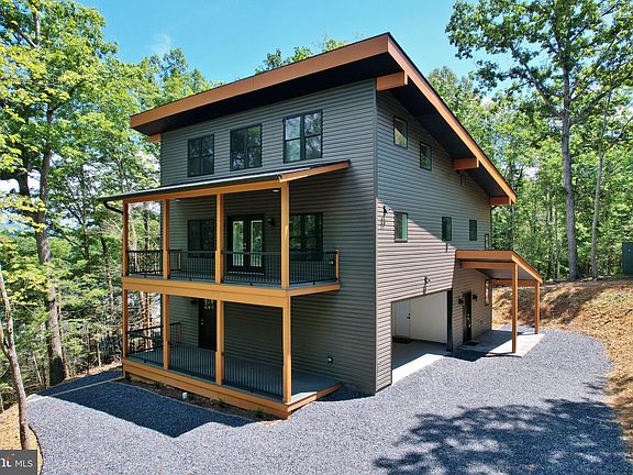 "Tall Oaks" Mountain Elegance with Versatile with 2 Living Spaces. Nestled in the heart of the mountains, this newly custom constructed (and completed in 2025) home offers a rare blend of contemporary design and alpine serenity. Spanning three thoughtfully designed levels, the residence is as functional as it is stunning. The lower level lives like a private apartment, complete with its own entrance and parking area, full kitchen, living and dining area, bedroom, full bath, and laundry hookups—ideal for guests, extended family, or rental potential. A covered patio adds a quiet outdoor retreat. Upstairs, the main level welcomes you with custom floors and sleek modern fixtures throughout. The open-concept kitchen, living, and dining area is anchored by a striking electric fireplace and flows seamlessly onto a covered deck—perfect for entertaining or unwinding with mountain views. Two spacious bedrooms each feature en-suite baths, and a stylish half bath and full laundry room round out the floor. The top level offers two additional bedrooms and a full bath, providing ample space for family, work-from-home flexibility, or creative use. There is an area for storage also! A two-car garage and a gently sloped driveway with generous parking make mountain access effortless. This home is a rare opportunity to enjoy the tranquility of mountain living without sacrificing modern comfort or convenience. Seller to offer one year warranty valued at $600.00. Property comes with state of the art video surveillance monitoring system. Floors are Bruce Natural Hickory and siding is NDX premium vinyl siding. Don’t forget to watch the virtual walk through video! Bryce Resort is 5 minutes away and offers the following: small airport, library, dog park, indoor pool, outdoor pool, lazy river, pickleball, tennis, playground, golf, mini golf, lake, mountain biking, skiing, snowboarding, ice-skating rink, and restaurants. 1.5 hours from NoVA. There is a farmers' market on Wednesdays during the summer. Call now for an appointment.