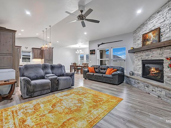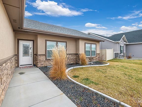 Tastefully designed & built to last! This fantastic home nestled in the NW quadrant of Twin Falls offers quick access to schools, canyon walking trails, hospital, shopping & local eateries. This well-built home offers a relaxed lifestyle with solar panels, hardwired electric blinds, Electronic Vehicle charging outlet, epoxied OVERSIZED garage, 30 AMP RV outlet, fly fan hardwired over the patio door, & copper plumbing. The interior of this lovely abode welcomes you w/a spacious entry that opens up to the spacious living area w/vaulted ceilings. The floor to ceiling fireplace speaks to future winter evenings. The stunning chef's kitchen is open to the living and dining w/an oversized island, custom cabinetry & hood, gas range, wine rack. The primary suite is a welcoming oasis w/beautiful lighting, dual vanities, a stunning walk-in shower w/two shower heads, walk-in closet, & a door to access the back patio & future hot tub! Enjoy the upcoming summer months on the oversized back patio around the gas firepit!