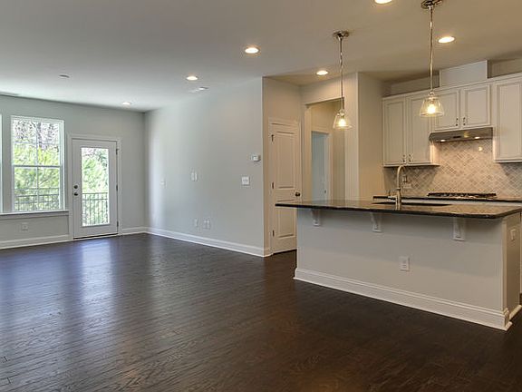 The cozy Dawson floor plan opens to a two-story foyer that looks up into the loft in the creatively designed three-bedroom, two and a half bath townhome. The foyer leads to the dining room, which opens to a Great Room, where an adjacent patio invites outdoor entertaining. Next to the Great Room is a private study, with an option available to add a tub in the adjacent powder room to create a guest suite instead. A large island separates the dining room from the kitchen, which is appointed with Whirlpool appliances and birch cabinetry. The kitchen also features a large walk-in pantry, next to a drop zone, which leads to the two-car garage. The staircase to the second floor opens to a spacious loft, perfect for a recreation room. The sumptuous owner's suite features a garden tub and separate shower and large walk-in closet.