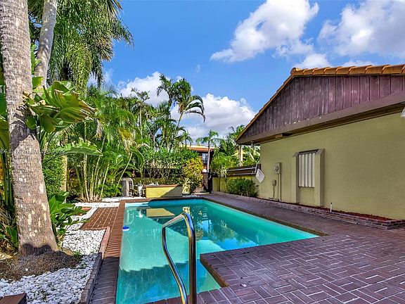 WELCOME HOME!!!This lovely 3/2 with private heated pool & two car garages. Located in a secure gated community. Beautiful upgrade kitchen and bathrooms. Vaulted ceilings with spacious living areas offering an abundance of natural light and pool view. Master suite that features a custom walk-in closet. Well maintained and fantastic floorplan with lovely color palette. Oversized backyard perfect for entertaining & BBQ. Hurricane shutters throughout. New roof 2018. New AC unit & electric panel 2017. Pool Heater 2018. Washer, Dryer & Refrigerator 2022 Located 15 min to the beach, close to I-95 & Turnpike, Aventura Mall and much more!! Won't Last .