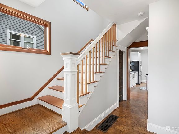 Take a look at this delightful home in Roosevelt! The top two floors offer breathtaking views of Mt. Rainier, with the primary bedroom enjoying the best view. Upon entering, you'll be greeted by a beautiful sunroom that leads into the living area, dining room, kitchen, and a half bath. Upstairs, there is the primary bedroom with an ensuite bath and two walk-in closets. Additionally, there are two more bedrooms with walk-in closets and a full bath. On the lower floor, you'll find the laundry area, as well as a bedroom that has the potential to become a studio. This bedroom and bathroom are already plumbed for the addition of a kitchen! The house is located 5 blocks away from the Roosevelt Light Rail Station and has easy access to I-5.
