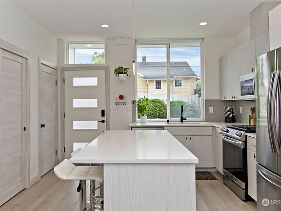 Welcome to this contemporary 2022 custom-built Roosevelt residence offering 1,660 sq/ft of modern living space. Featuring 3 bedrooms, 2.25 bathrooms, and an open floor plan w/extended walls of windows, this home is perfect for comfortable living and entertaining. The kitchen is a culinary enthusiast's dream w/large central island, quartz countertops, custom cabinets and S/S appliances. Enjoy the spacious primary suite with a spa-like bath and tons of closet space. The large rooftop deck is ready to entertain w/gas hookup and stunning mountain, lake, and city views. Amenities include AC, tankless water heater, 2-car driveway parking and much more. No HOA. On quiet street next to park, sportcourt, minutes to Green Lake and fast access to I5.